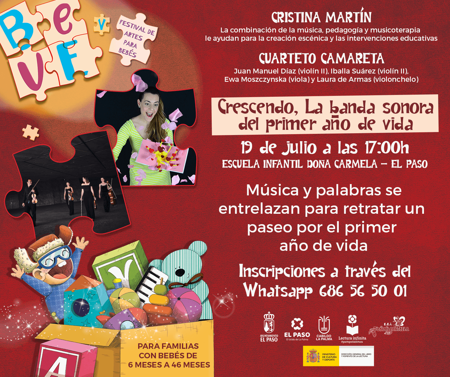 CRESCENDO, La banda sonora del primer año de vida entremezcla la música con las palabras con la intención de retratar el primer año de vida del bebé: recorridos por el parque llenos de descubrimientos, risas, abrazos y sueños. Una apuesta escénica que abre las puertas a la cultura desde la primera infancia, y que invita a dejarse envolver por un universo sonoro para disfrutar en familia.
