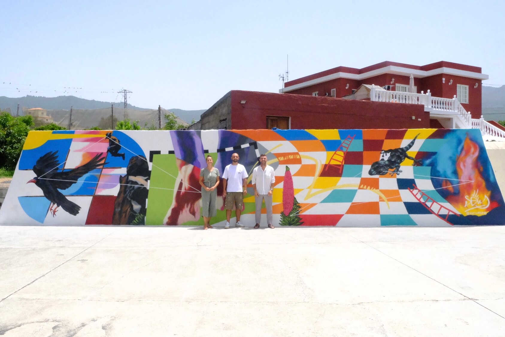 19-08-2025. El Ayuntamiento de El Paso ha inaugurado en la Casa de la Juventud el mural “Escaleras y Salamandras”, una obra del artista canario Víctor Seus que convierte el espacio en un lugar de juego, tradición e identidad para la juventud del municipio.