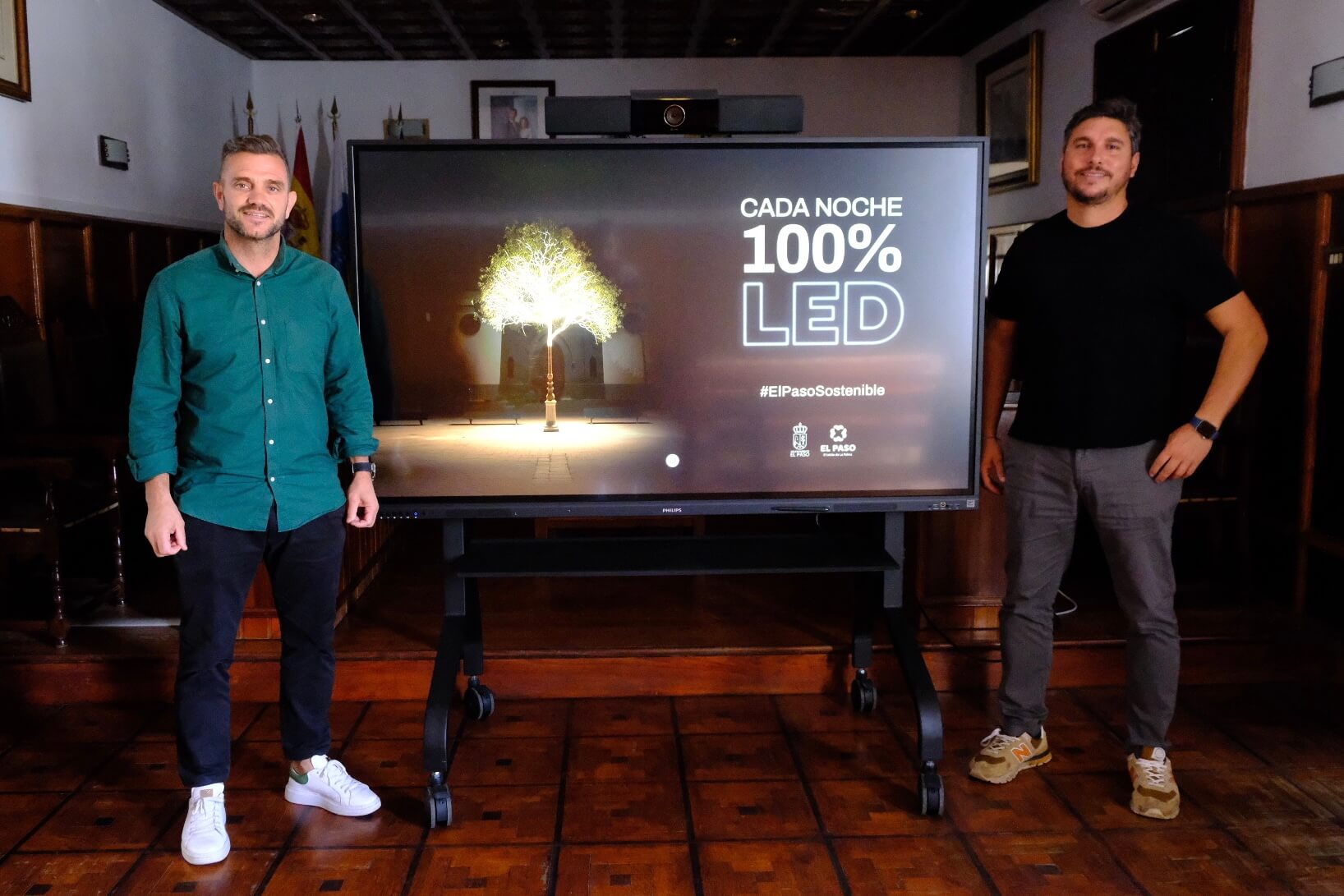 12-11-2025. Tras reemplazar las luminarias de vapor de sodio por sistemas de última generación, el Ayuntamiento de El Paso pone en marcha ‘Cada noche 100% LED’, una iniciativa que busca acercar a la ciudadanía los beneficios ambientales, económicos y sociales de la modernización del alumbrado público.