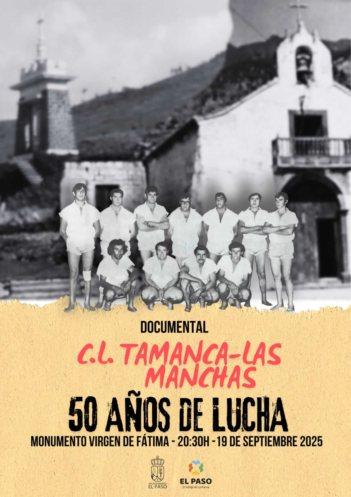 11-09-2025. El Ayuntamiento de El Paso y el Club de Lucha Tamanca Las Manchas, presentará el próximo 19 de septiembre el documental “50 años de lucha”, una obra audiovisual que recoge los momentos más significativos de la trayectoria de esta histórica entidad deportiva, destacada en el archipiélago y referente de la lucha canaria en la isla de La Palma.