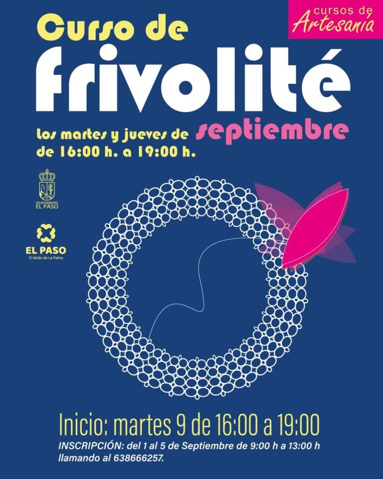 Se abre el plazo de inscripción para participar en el Curso de Frivolité que se impartirá todos los martes y jueves de septiembre de 16:00h a 19:00h. Más información en el 638666257.